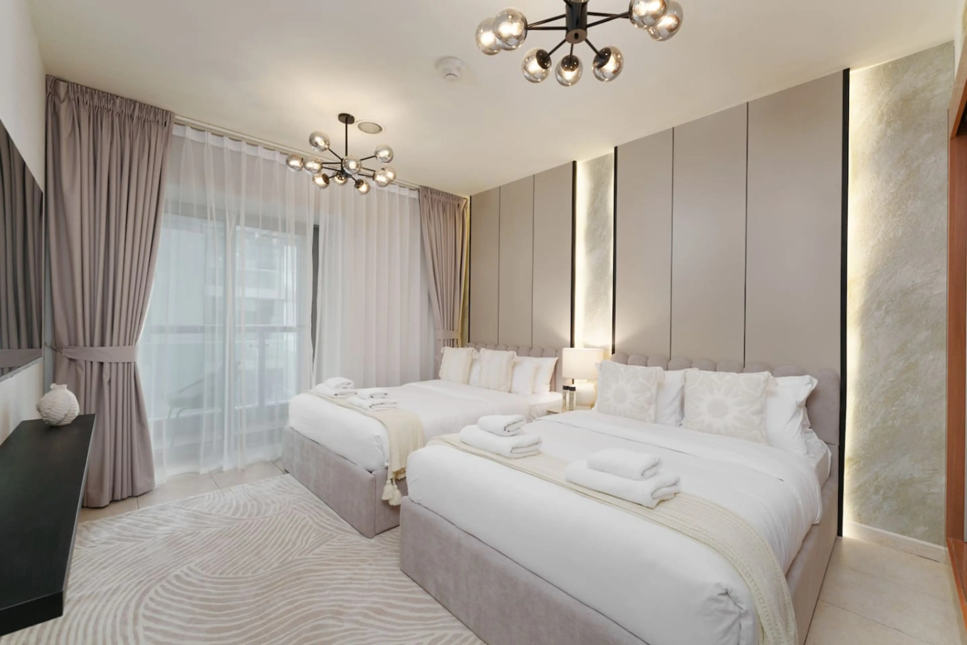 Stylish 1-Bedroom Apartment with Sofa Beds in Ocean Heights, Dubai Marina – Sleeps 8 Contemporary décor, urban skyline views, and a prime location in Dubai Marina. With 2 double beds in the bedroom and 2 sofa beds that each sleep 2, the apartment comfortably hosts up to 8 guests. The bright living ...